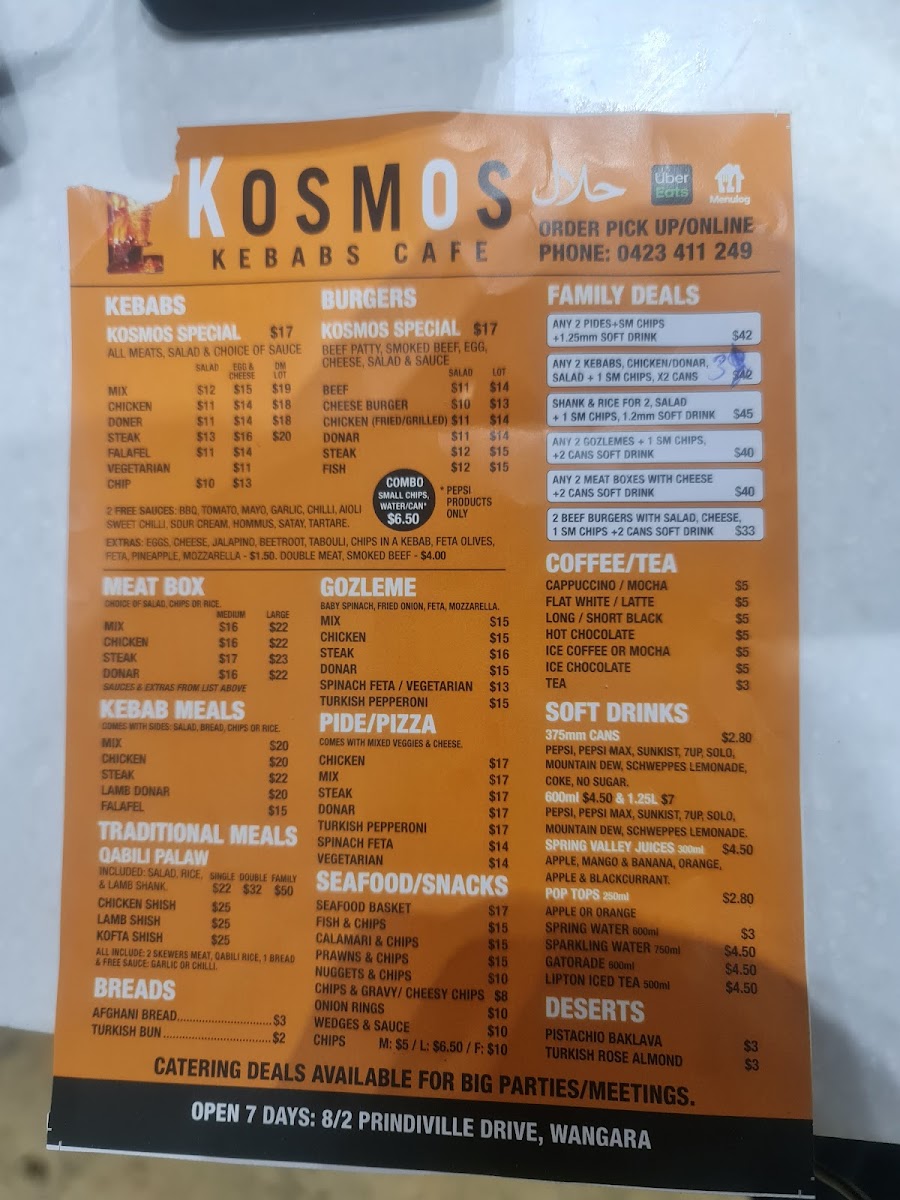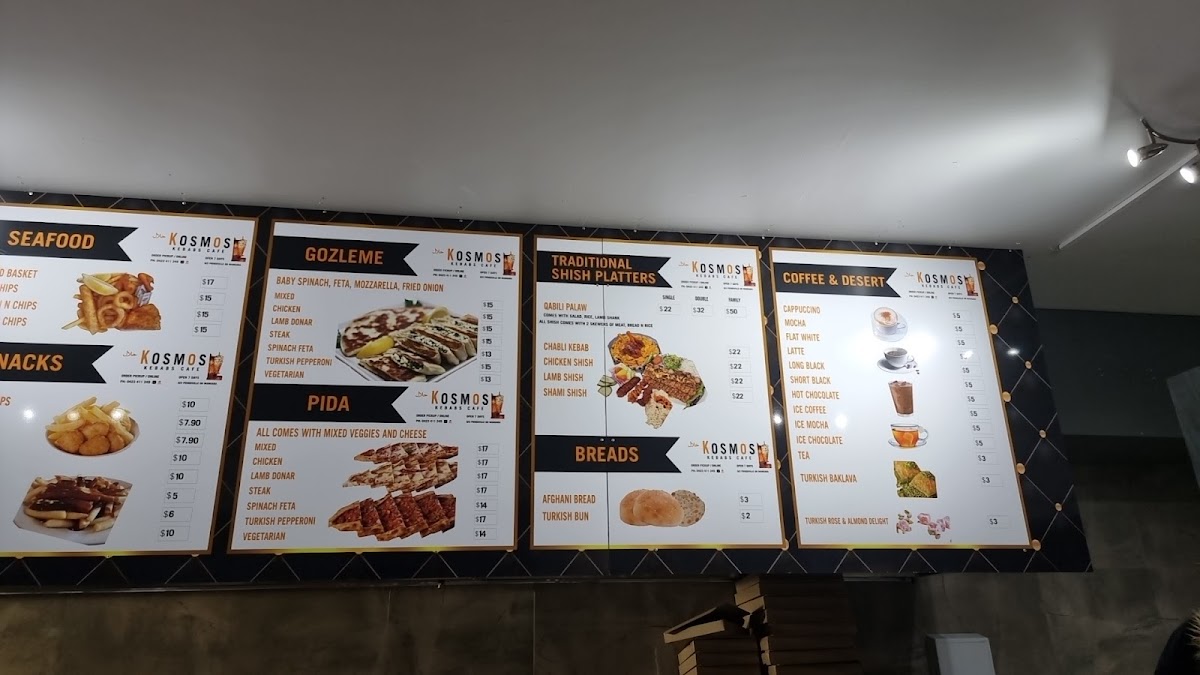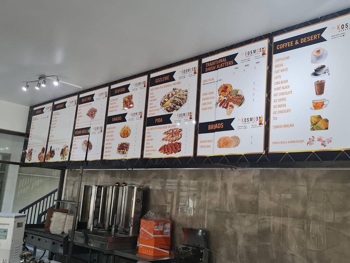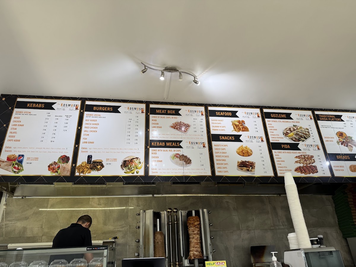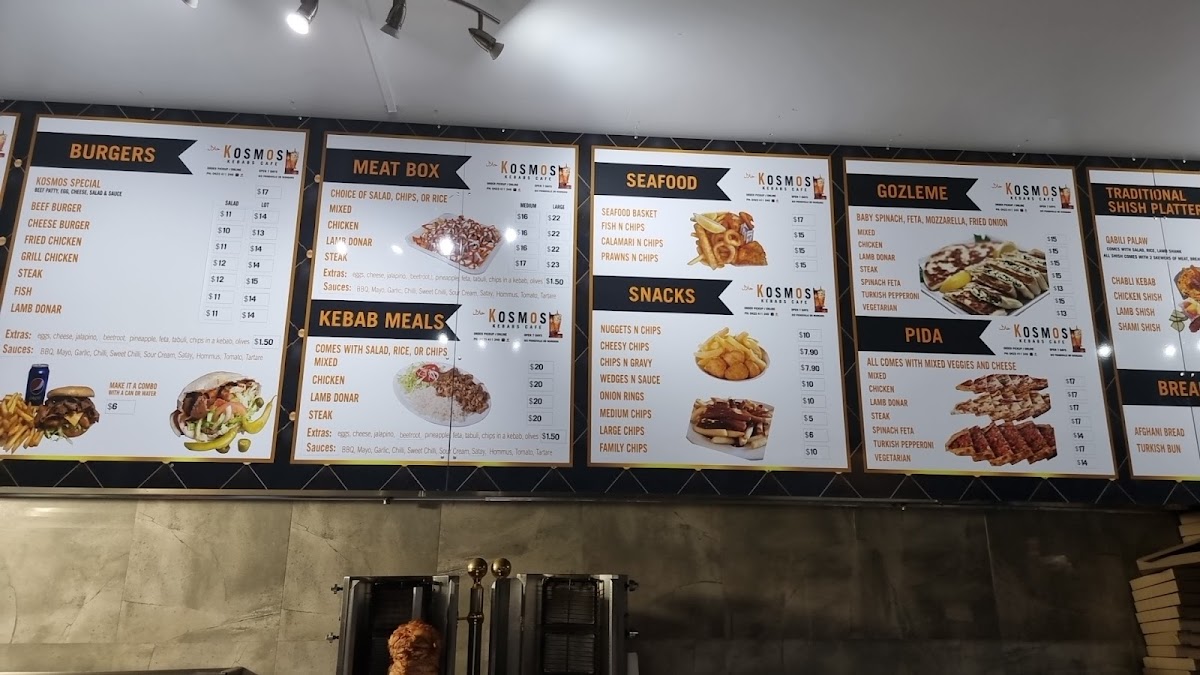 Kosmos Kebabs Wangara’s menu delivers a satisfying mix of hearty portions and classic takeaway favourites, making it a reliable spot for comfort food done well. The Large Mix Meatbox the Lot stands out for its generous serving and variety of flavours, while the Mix Meat Rice Meal offers a well-balanced option for those wanting something filling but not overly heavy. The tender, slow-cooked Lamb Shank Box adds a more premium feel to the menu, complementing the more traditional Meat Boxes and Kebab and Kebab Meals that the restaurant is known for. For something a little different, the Gozleme & Pida selection brings a welcome variety of Turkish-style options, and sides like Chips & Gravy are perfect for rounding out a meal. The menu also caters to broader tastes with items like the Beef Burger, ensuring there is something for everyone, while the Lchicken HSP Meat Boxarge provides a hearty choice for those craving a classic halal snack pack. Overall, the menu is diverse, well-portioned, and satisfying, making it a great choice for both quick takeaway and a filling meal.